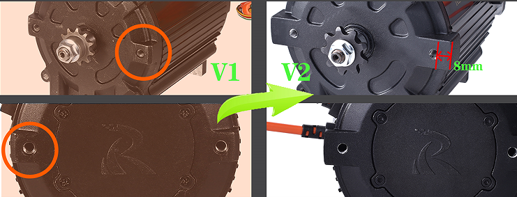 The V2 motor housing now features thicker front and rear case edges, upgraded from 3mm to 8mm. This minimizes vibration and ensures a more secure installation, even in rough or off-road environments.